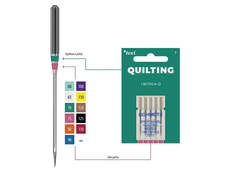 Jehly na kovové nitě (Metallic) 130 MET - Pro šití s kovovými nitěmi.