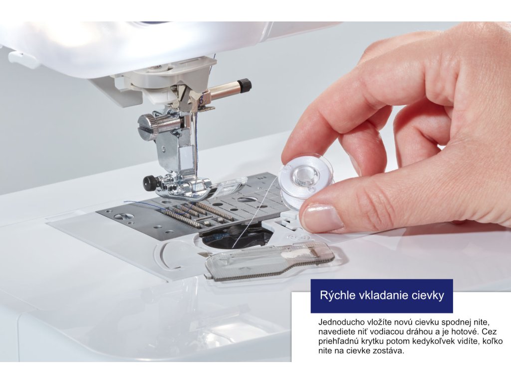 | Regulácia rýchlosti šitia na stroji: | Áno |