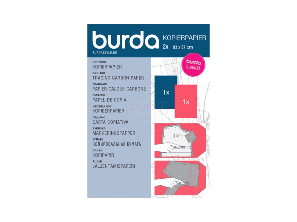 Kopírovací papír se používá k vykopírování linií střihu na rub látky pomocí kopírovacího radla. V modré a červené barvě - vhodný pro tmavší látky. Nevhodný pro průsvitné látky a pro tkaniny s hrubší strukturou.