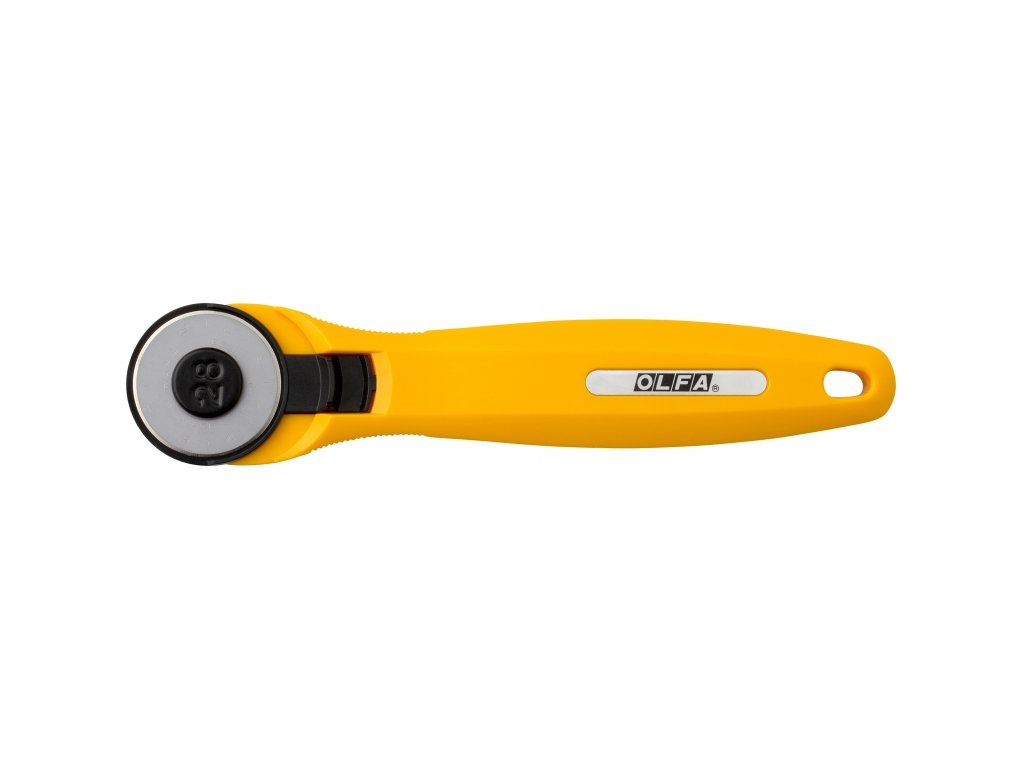 Kruhový řezač o průměru 28 mm vám pomůže při řezání malých částí. Je to nenahraditelný pomocník při přesném řezání látek. Čepel je ostrá jako břitva a je vybavena výsuvnou bezpečnostní ochranou. Rotační řezač zvládne přesně řezat více vrstev látky najednou. Když se vám čepel otupí, můžete si zakoupit náhradní. Rotační řezač je určen i pro praváky a leváky. Nyní s mechanismem rychlé výměny čepele.