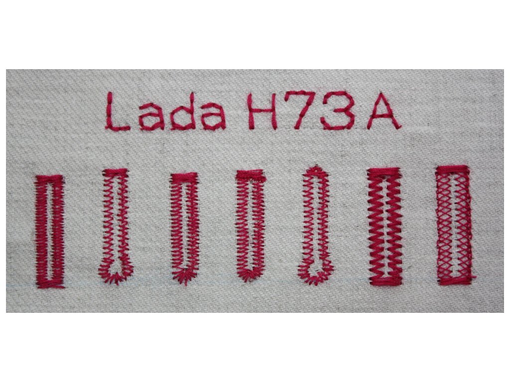 Šijací stroj Lada H73A je určený nielen pre skúsené krajčírky, ale aj pre začiatočníkov. Má veľmi jednoduchú obsluhu, navyše obohatenú o rad nových funkcií, najmä o automatický odstrih hornej a spodnej nite. Stroj má prehľadný grafický LCD displej na ktorom sa zobrazujú všetky funkcie, ako napríklad zvolený steh, jeho dĺžka a šírka, odporúčaný typ pätky, alebo poloha ihly.