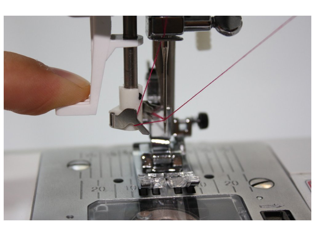 - Navliekač hornej nite prevlečie niť uškom ihly behom okamihu